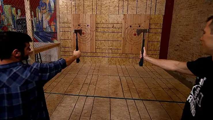 Bad Axe Throwing firmasının Chicago’da açtığı ABD’nin ilk balta poligonu gençlerden yoğun ilgi görüyor. Takımlar oluşturarak ortalama 2.5 saat süren turnuvalar düzenleyen balta fırlatma meraklıları, eğitmenler gözetiminde günün stresinden kurtuluyor. Poligonu kullanmak için yaklaşık 50 dolar ücret ödeyen gençler özellikle doğum günü ve bekarlığa veda partileri için söz konusu etkinliği tercih ediyor. Poligonda alkol alınmasına izin verilmiyor.