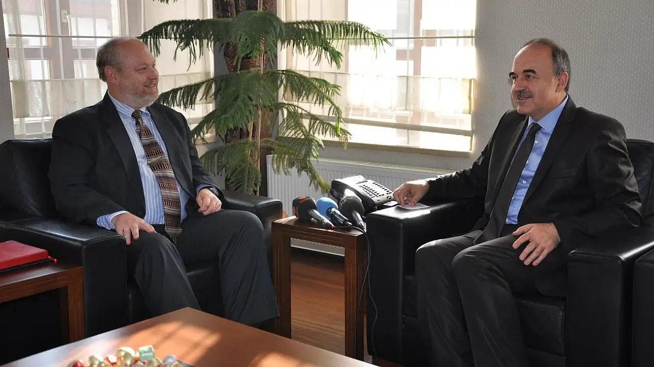 Amerika Birleşik Devletleri (ABD) Büyükelçilik Ekonomi Müsteşarı James Turner, Konya Valisi Muammer Erol'u makamında ziyaret etti.
