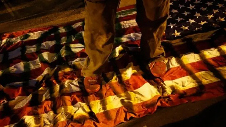 ABD'yi saran siyahi öfkenin merkez üssü Ferguson'da protestocular polis araçları ve mağazaları ateşe verirken California'da Amerikan bayrağı ayaklar altına alındı.