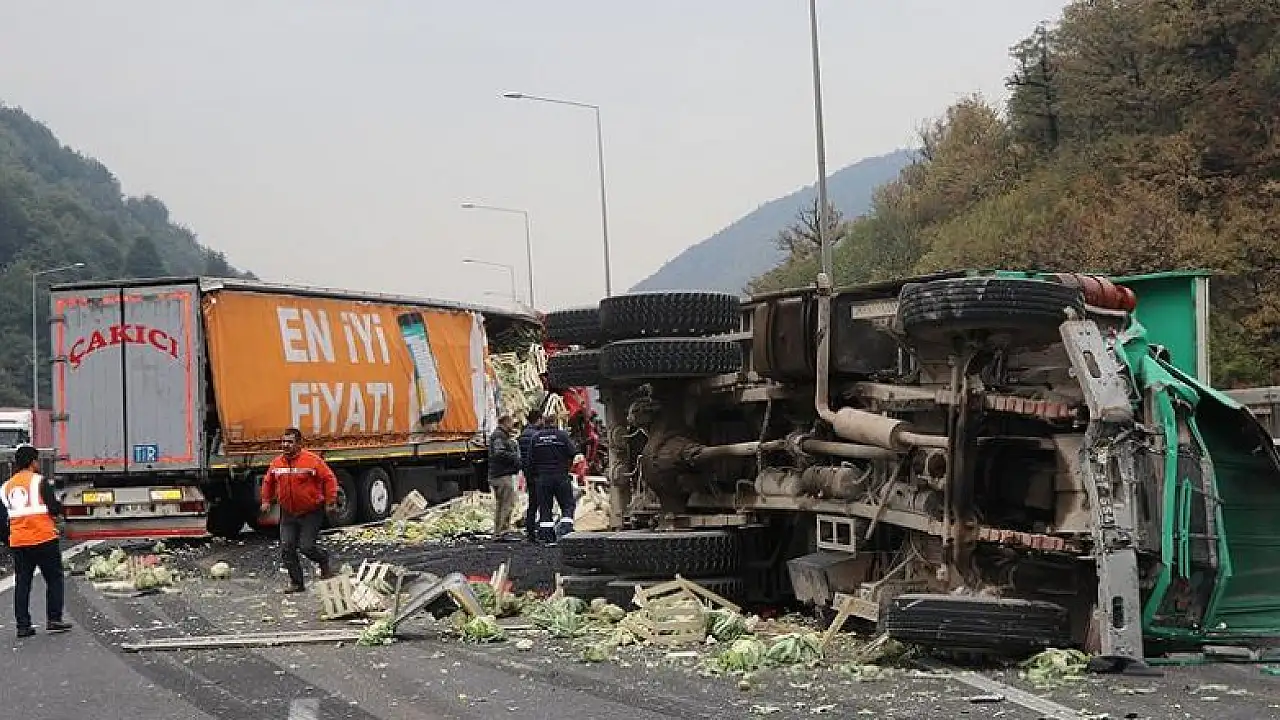 Anadolu Otoyolu'ndan İstanbul yönüne giden Ali Eryılmaz idaresindeki 54 KR 020 plakalı sebze yüklü tır, Bolu Dağı Tüneli ikinci viyadük üzerinde aynı yönde seyreden Ersin Kalpaklıoğlu'nun kullandığı 81 AT 564 plakalı asfalt malzemesi yüklü kamyonla çarpıştı.