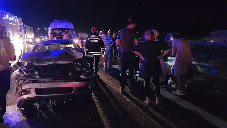 DÜZCE'de, Anadolu Otoyolu'nda 5 aracın karıştığı zincirleme kazada 5'i çocuk 14 kişi yaralandı.