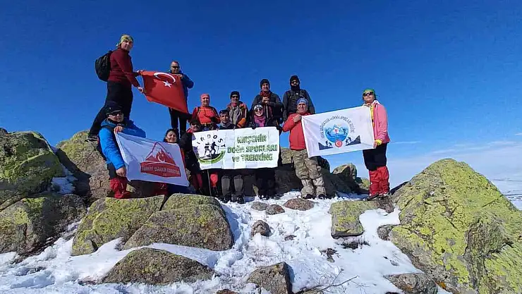 Bin 677 metre yüksekliğindeki Baranlı Dağı tırmanışı ise soğuk havaya rağmen gerçekleştiren Aydın, ekibi ile birlikte dağın zirvesinde Türk Bayrağı açarak poz verdi.