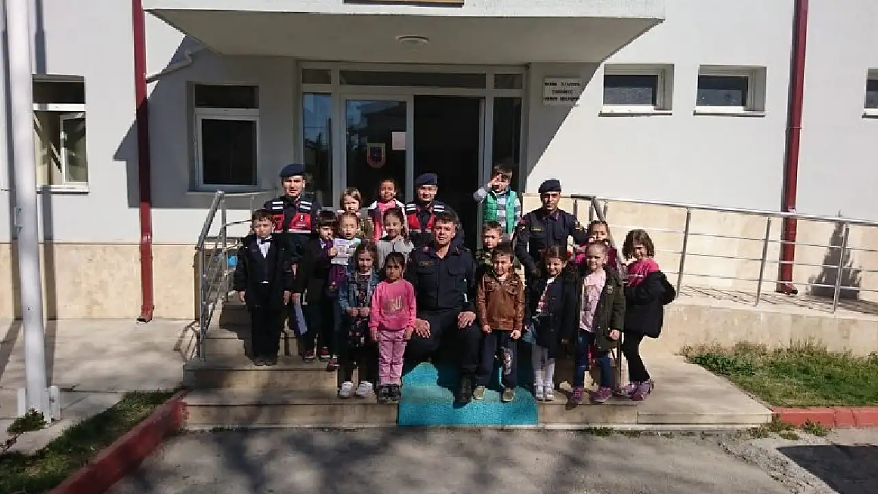 Anaokulu öğrencilerinin jandarma karakolunu ziyareti