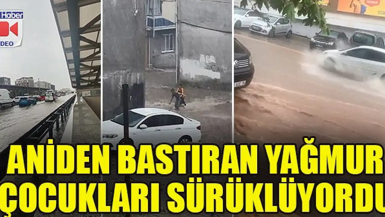 Aniden bastıran yağmur çocukları sürüklüyordu