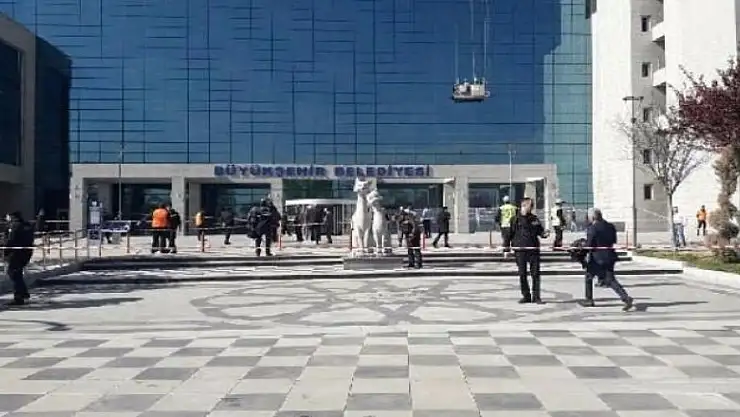 Büyükşehir belediyesine gelen polis ekipleri geniş çaplı çalışma yürütürken, olayla ilgili inceleme başlatıldı