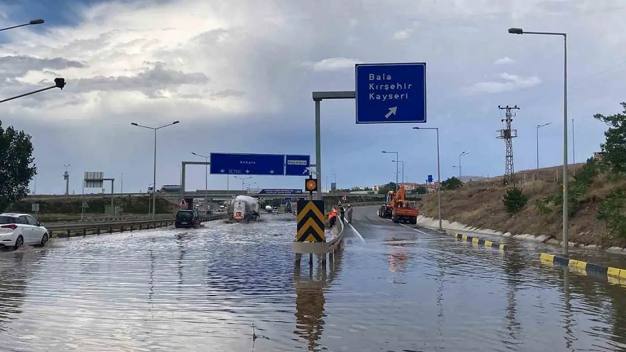 Ankara-Konya karayolu Bala kavşağı yol ayrımı, sağanak sonrası oluşan taşkın nedeniyle bir süre ulaşıma kapandı.