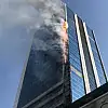 Binadan yükselen dumanlar, gökyüzünü kapladı. Binanın yanan bölgelerinden kopan parçalar yere düşerken, çevrede büyük korku yaşandı.