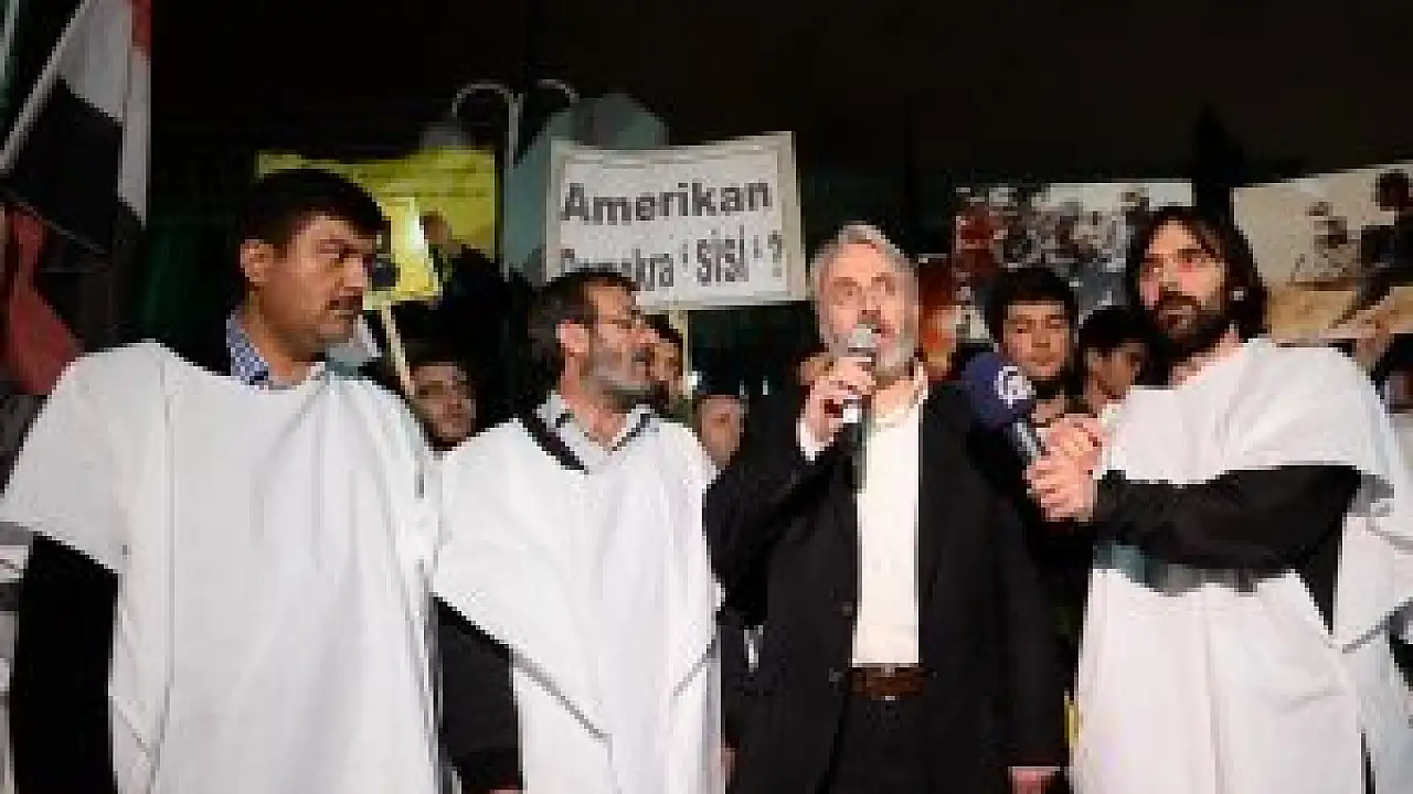 Konuşmanın ardından Kuran-ı Kerim okundu, dua edildi. Arapça ve Türkçe sloganların atıldığı protesto gösterisinde, marş söylendi.