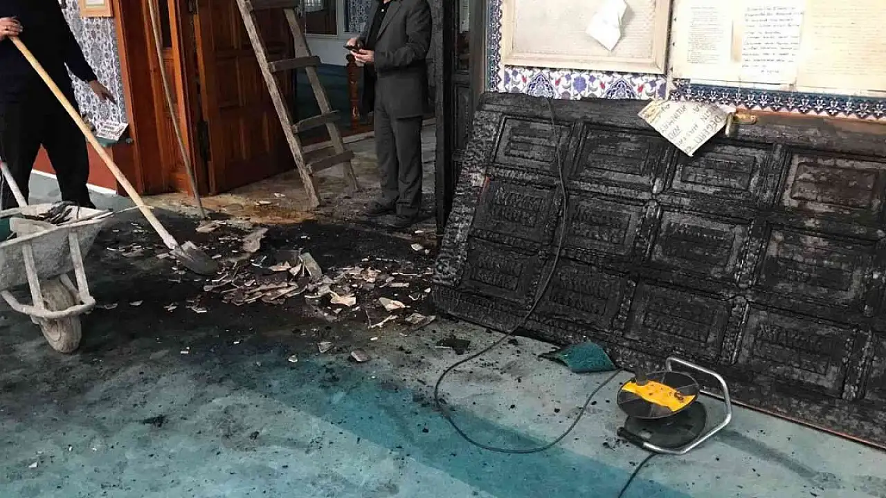 "Bugün sabah böyle üzücü bir haber aldık. Sabah börek almaya gelen ustamız bir kablo kokusu hissediyor. Camimizin şadırvanına gelince bizi aradı. Sağ olsun itfaiyeyi aramış. Geldiğimizde İtfaiye olayın başındaydı. Bizde onlara yardımcı olmaya çalıştık. İçerisi dumandı. Kapı tutuşmuş. Emniyette bununla ilgili araştırmasını yapıyor. Tabi biz olaydan dolayı üzüldük. Burası hepimizin ortak alanı milli servetimiz."