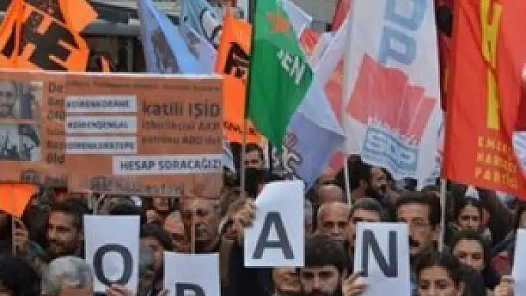 Kobani saldırılarını protesto etmek için aralarında HDP Eş Başkanı Figen Yüksekdağ, HDP Mardin Milletvekili Adil Zozani, partililer, DİSK Genel Başkani Kani Beko, çeşitli sivil toplum kuruluşlarından oluşan yaklaşık 300 kişi, Olgunlar Caddesi'nde toplandı. Çeşitli dövizler taşıyan grup, sloganlar eşliğinde Yüksel Caddesi'ne kadar yürüdü. Çevik Kuvvet polisleri belli noktalarda gruba yaklaşmadan tedbir alırken, grubu sivil polisler takip etti. Yüksel Caddesi'nde toplanan grup, yapılan basın açıklamasının ardından olaysız şekilde dağıldı.