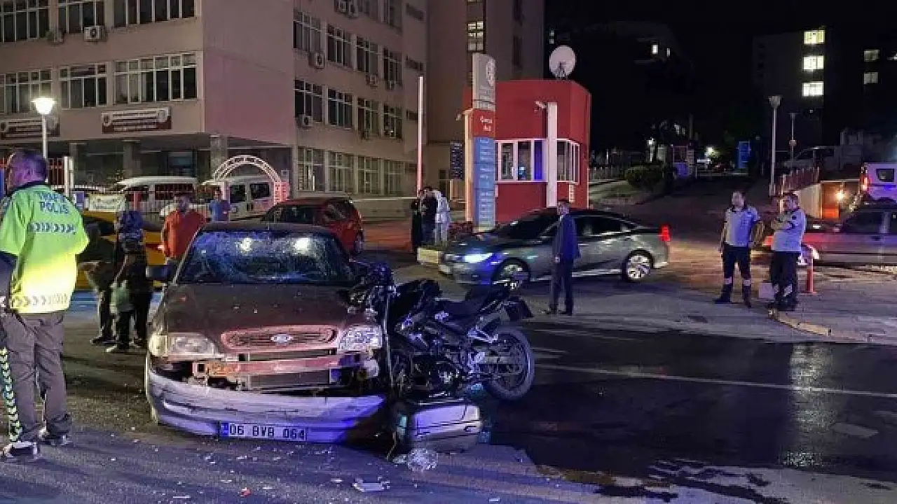 Ankara'da motosiklet otomobile ok gibi saplandı: 2 yaralı