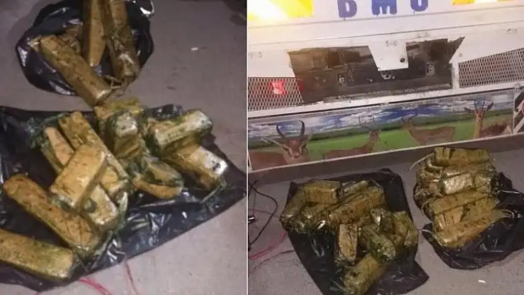 Elektrikli testere ile tamponu kesen ekipler, birbirine bağlanmış 24 pakette toplam 40 kilo 260 gram toz esrar ele geçirdi.