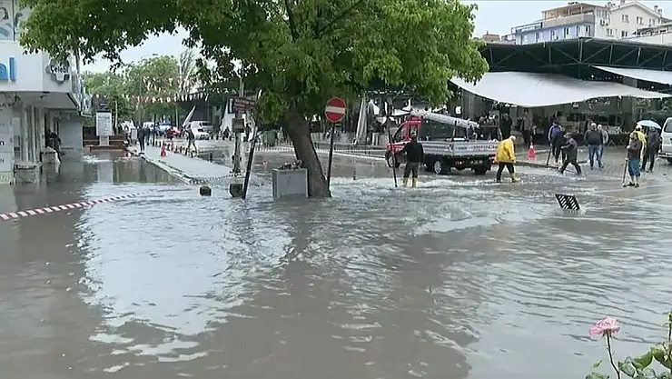 Cadde ve yollarda biriken suların tahliyesi için ilçe ve Büyükşehir Belediyesi ekipleri çalışma başlattı.