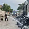 Yangın kısa sürede depoda bulunan malzemelerin tamamına sıçradı ve çatı çöktü.