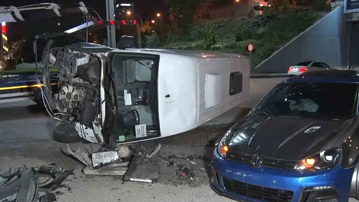Ankara'nın Çankaya ilçesinde personel servisi ile otomobil çarpıştı. Kaza sonucu devrilen personel servisindeki 3 kişi yaralandı.