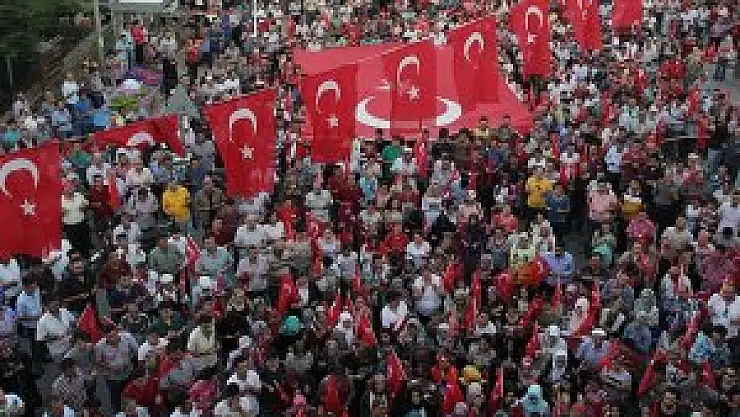 Emekli öğretmen Ahmet Yıldırım ise konuşmasında, terörü lanetleyerek, "Biz birlik ve beraberlik içinde olduğumuz sürece Türkiye Cumhuriyetini kimse yıkamayacaktır ve yıkmaya da cesaret edemeyecektir" şeklinde konuştu.
