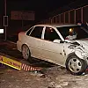 Otomobillerden biri yol kenarındaki duvara çarparak durabildi.