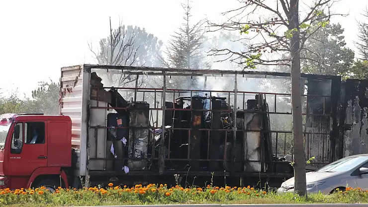 Ankara'da yanan kamyonun kasasındaki eşyalar kül oldu