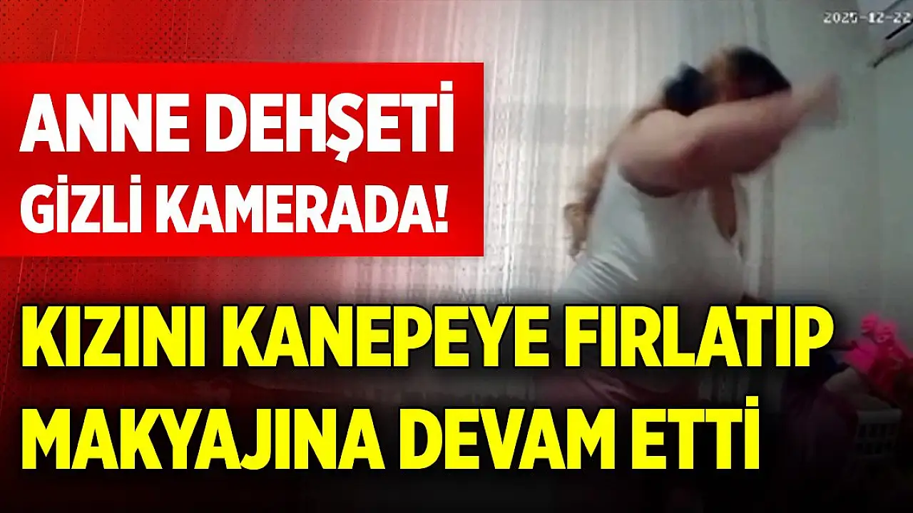 Anne dehşeti gizli kamerada! Kızını kanepeye fırlatıp makyajına devam etti