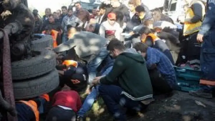 “Ben olay günü kaza anında kazanın meydana geldiği yere 30 metre uzaklıkta kaza yerini gören bir çay ocağında kamelyasında oturuyordum. Ben kazada vefat eden bayanları zaten 7-8 yıldır tanırdım, Kazadan 5 dakika önce ellerinde su bidonlarıyla oturduğum kamelyanın yanından geçerken bana da merhaba demişlerdi. Merhaba ne yapıyorsunuz diye sormuşlardır, ben de 'hiç abla oturuyorum' demiştim, bunun üzerine 'her zaman çalışma olmaz biraz da oturun' diyerek oradan ayrılmışlardı, su bidonlar doluydu, bu arada yola baktığımda bir kamyonun yolun ortasında durduğunu, kazaya karışan kamyonun ise daha geride uzaktan gelmekte olduğunu görmüştüm, bu arada 3 arkadaş olarak sohbete daldığımızdan bir an baktığımızda arkadan gelmekte olan kamyonun yolun ortasında duran kamyonun sağından geçmek isterken devrilmekte olduğunu gördüm fakat bayanların kamyonun altında kaldıklarını o an için fark edemedim. Kaza yerine gittiğimizde ancak önce görüştüğüm bayanların kamyon altında kaldıklarını anladım. Kazaya karışan kamyonun süratine ilişkin olarak görgüye dayalı bir bilgim yoktur.”