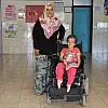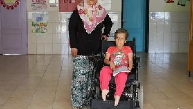 Annesi tarafından uzun süre kucakta okula getirilip götürülen 11 yaşındaki Çelik, 10 gün önce ödünç olarak verilen tekerlekli sandalyeyle okuluna devam etti.
