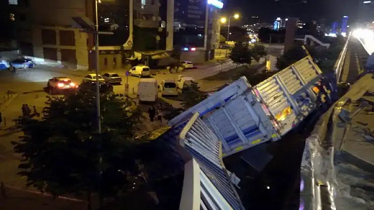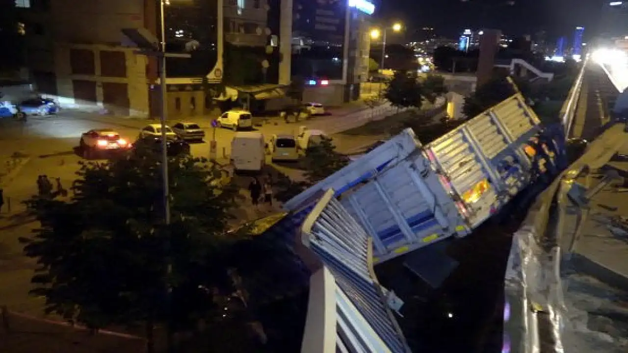 Kaza, dün saat 21.30 sıralarında Mürselpaşa Bulvarı Şaraphane Köprüsü'nde meydana geldi. Konak ilçesinden Bornova ilçesi yönüne giden Osman Özen yönetimindeki 45 AFK 127 plakalı kamyon, sürücüsünün direksiyon kontrolünü yitirmesi sonucu bariyerleri aşıp karşı yönden gelen Mehmet Emin Çapkınoğlu yönetimindeki 34 BZU 836 plakalı otomobile çarptıktan sonra yaklaşık 15 metrelik yükseklikten alt yola düştü. Kazada, otomobildeki Hülya Çapkınoğlu hayatını kaybetti. Yaralanan sürücüler Osman Özen ve Mehmet Emin Çapkınoğlu ile otomobilde bulunan 3 kişi hastanelere kaldırıldı.