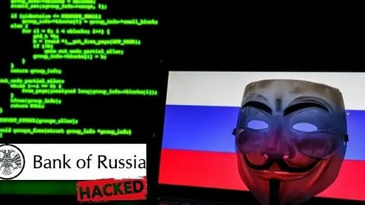 Dünyaca ünlü hacker grubu Anonymous, Rusya Merkez Bankası'nı hackleyerek, Rusya Devlet Başkanı Vladimir Putin'e mesaj gönderdi.