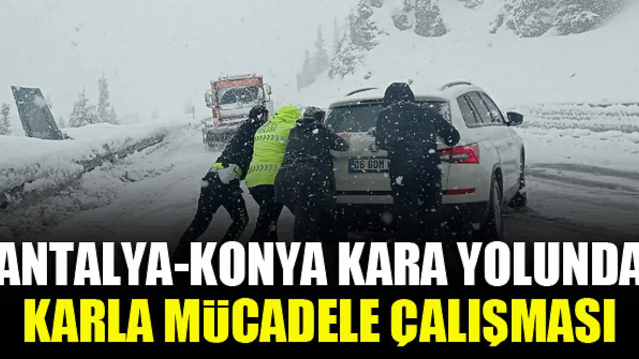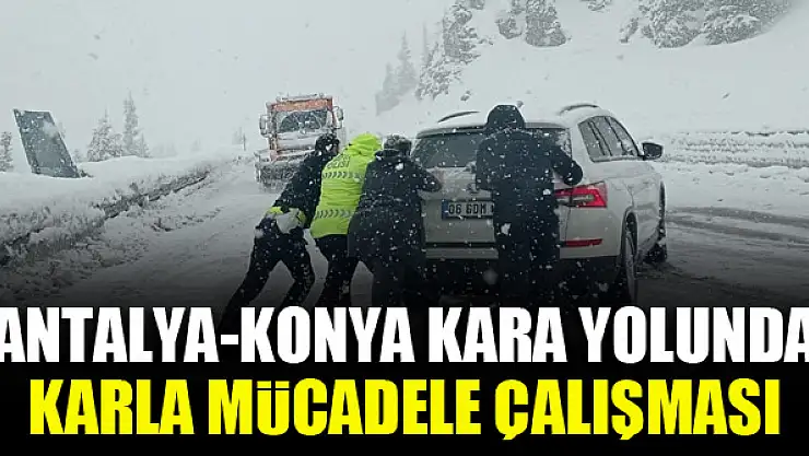 Yoğun kar yağışının etkili olduğu Antalya-Konya kara yolunda karla mücadele çalışması sürdürülüyor, yolda kalan sürücülere destek olunuyor.