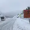 Antalya'yı Konya'ya bağlayan Akseki-Seydişehir karayolu üzerinde bin 825 metre rakımlı Alacabel mevkiinde kar yağışı yerini tipiye bıraktı.