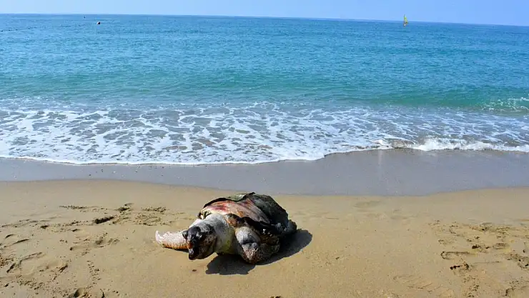 2 ölü deniz kaplumbağası sahile vurdu. Kaplumbağalardan birinin karpaksının sürat teknesi pervanesinin çarpması sonucu kırıldığı belirlendi.