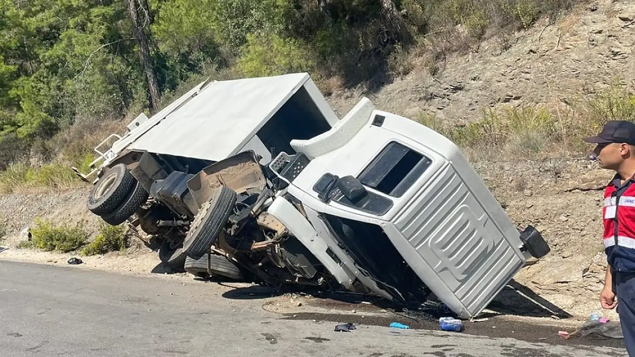 Antalya'da devrilen çöp kamyonundaki 1 işçi öldü, 2 kişi yaralandı