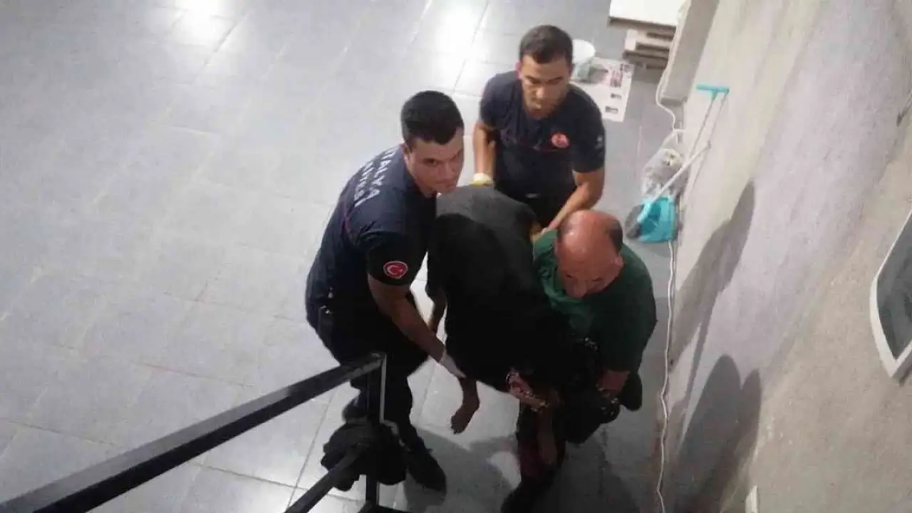 Antalya'da, 6 ay önce bir iş yerinin bodrum katında yaşamaya başlayan ve rahatsızlığı sebebiyle de 60 kiloya ulaşan köpek, itfaiye yardımıyla çıkarılıp sahibine teslim edildi.