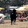 Antalya'da kaçan kurbanlık keçi, Kleopatra Plajı'na girdi