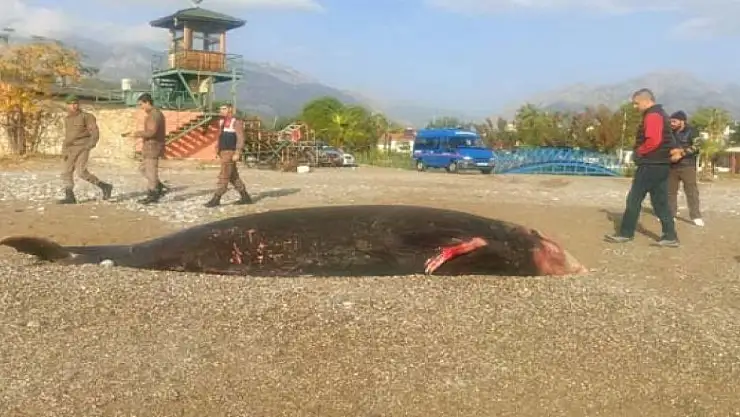 Antalya'nın Kemer ilçesinde vatandaşlar, sahilde yaklaşık 5 metre uzunluğunda ölü balina bulundu.
