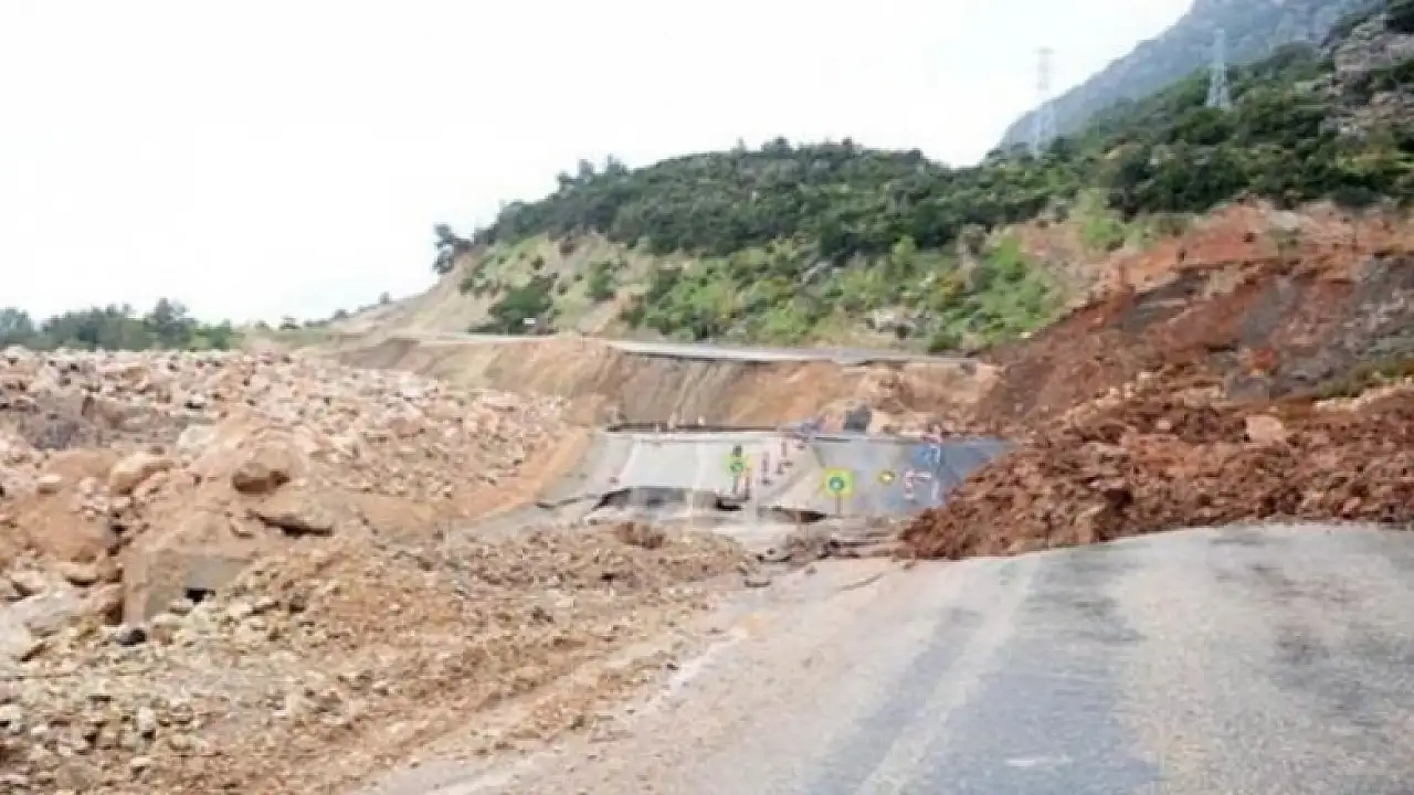 Antalya'nın Kumluca ilçesinde yapım çalışmalarının sürdüğü D-400 karayolunda heyelan nedeniyle çökme meydana geldi.