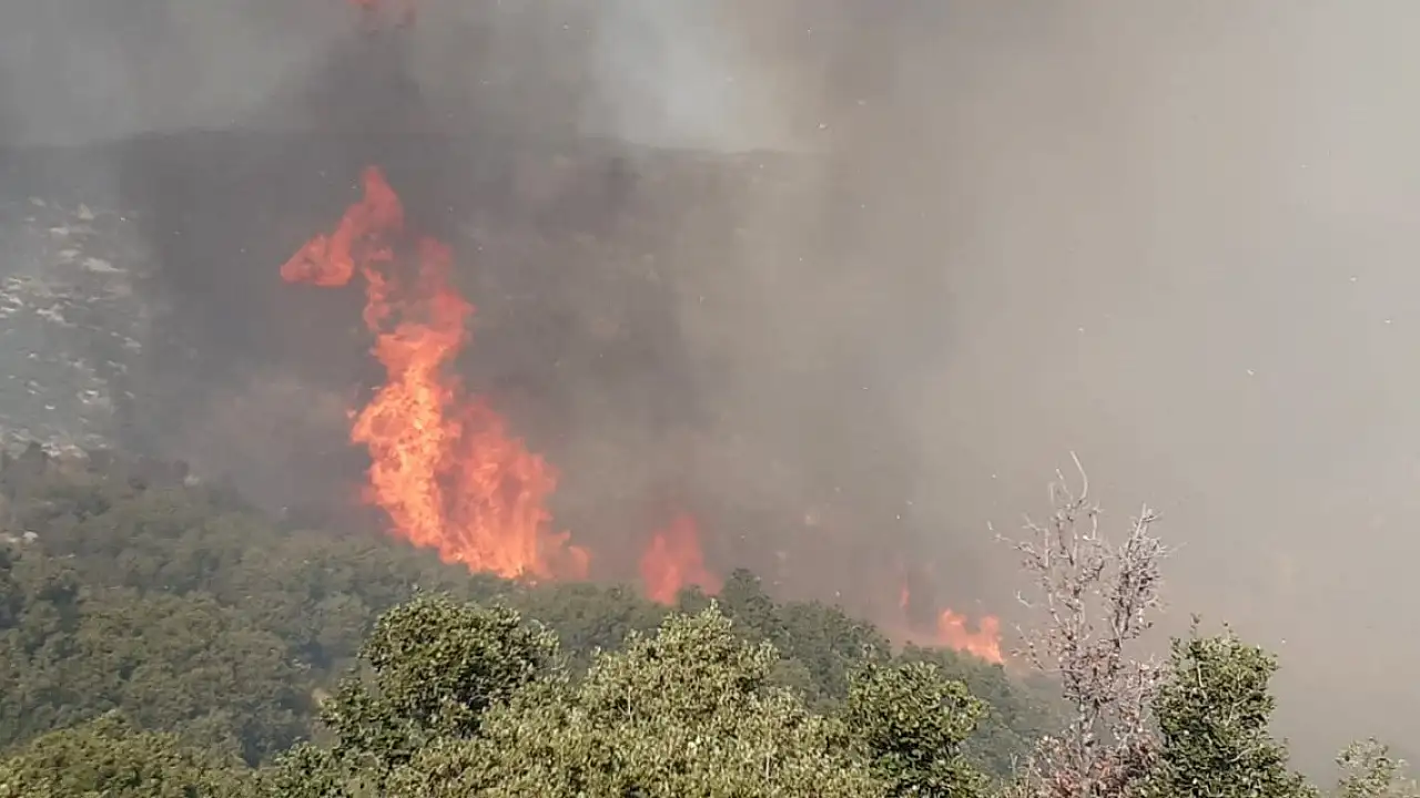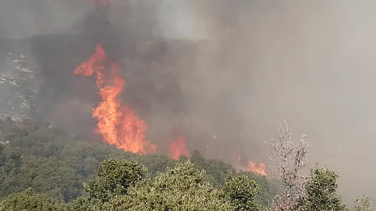Antalya'nın Kaş ilçesine bağlı Sarıbelen Mahallesi'ndeki makilikte çıkan yangına havadan ve karadan müdahale ediliyor.