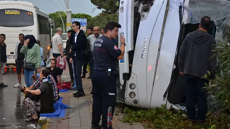 Antalya'da servis midibüsü devrildi, 9 kişi yaralandı