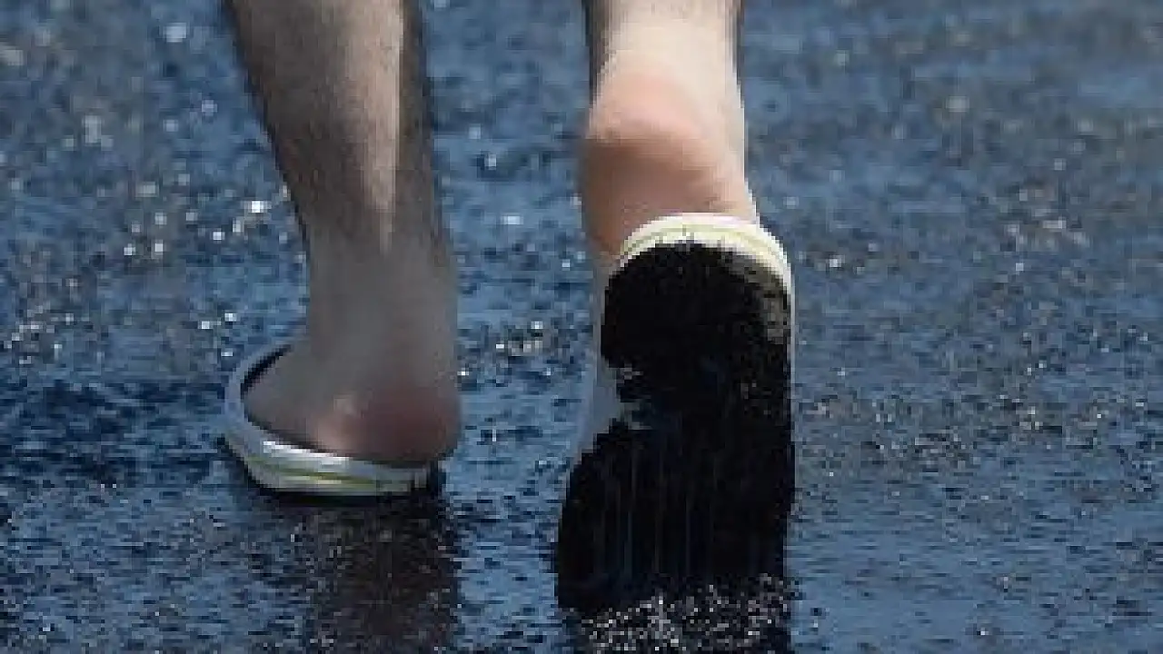 Antalya'da sıcak hava asfaltı eritti