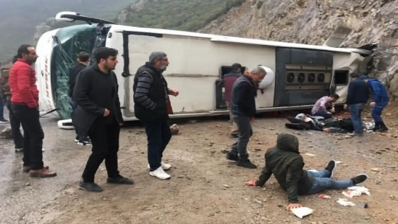 Antalya'da yağışlı ve kaygan yolda yan yatan otobüsteki yolculardan 15'i yaralandı. Yaralılardan 2'sinin durumunun ağır olduğu öğrenildi.