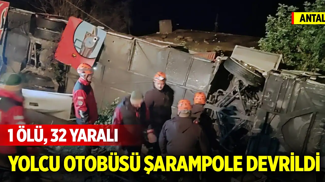 Antalya'nın Gazipaşa ilçesinde yolcu otobüsü şarampole devrildi. Yaşanan trafik kazasında 1 kişi hayatını kaybetti, 32 kişi yaralandı.