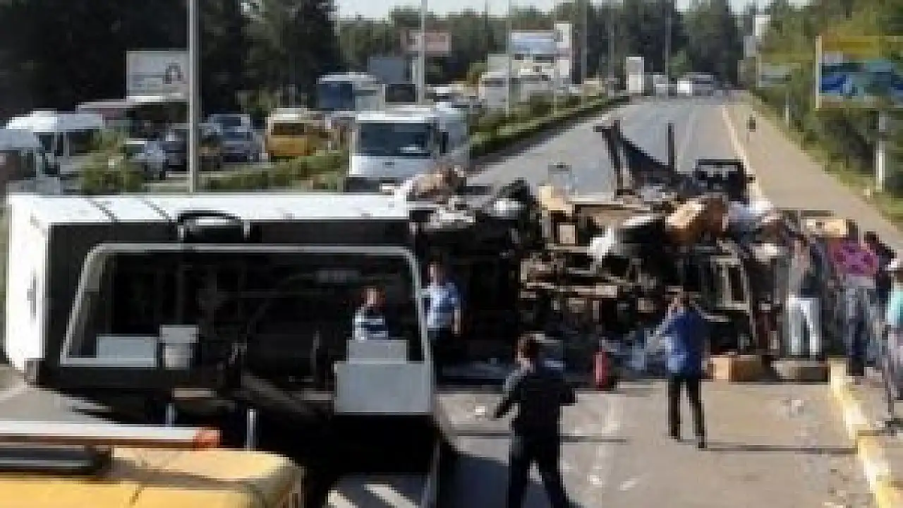 Çarpmanın etkisiyle devrilen kamyon ve midibüs yüzünden yol bir süre trafiğe kapandı. İhbar üzerine olay yerine gelen itfaiye ve polis ekipleri yolu yeniden trafiğe açtı. Can kaybı olmayan kazada yaralanan midibüs sürücüsü Kürşat Bıyıklı, ambulansla hastaneye götürüldü.