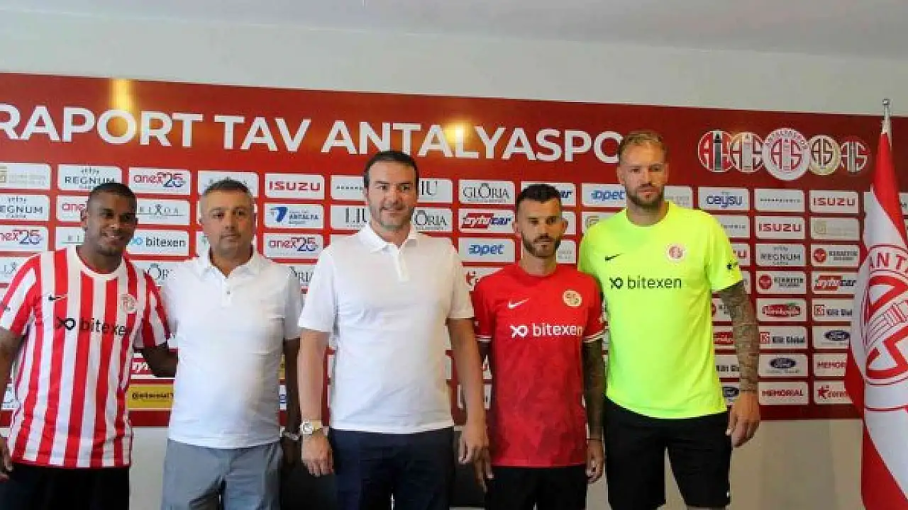 Konuşmaların ardından futbolcular sözleşmelerini imzaladı ve Antalyaspor bayrağı ile gazetecilere poz verdi.