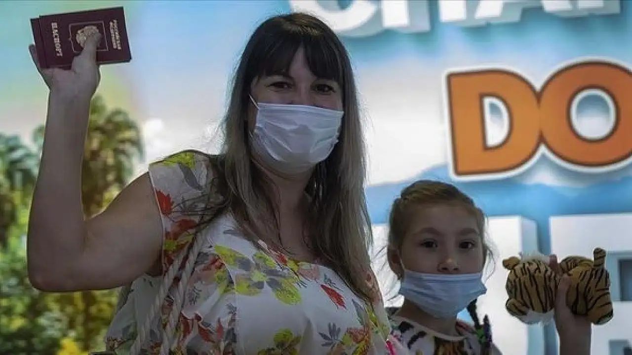 Havalimanından ayrılan Rus turistler, "Türkiye'yi ve Antalya'yı çok özlemiştik, merhaba Türkiye." ifadesini kullandı.