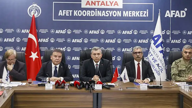 Açıklamalar sonrası Antalya Valisi Hulusi Şahin AFAD Kriz Masası'nda toplantı düzenledi. Antalya Büyükşehir Belediyesi Başkanı Muhittin Böcek'in de katıldığı toplantıda Vali Şahin, kentin hem sarı hem de turuncu kodla uyarıldığına dikkati çekti. Vali Şahin, "Yarın sabah saatlerinde Antalya'nın batı ilçelerinde Kaş, Demre, Finike'de turuncu kod var. 51 ile 100 kilogram yağış bekleniyor. Öğleden sonra bu yağışlar Antalya merkez ve doğu ilçelerine kayacak. Oralarda da 100 kilogram hatta üzerine de çıkacağı bekleniyor" dedi. Vali Şahin, vatandaşları fırtına ve sağanağa karşı tedbirli olmaları noktasında uyardı.