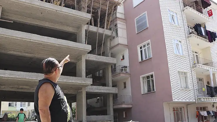 İnşaatı devam eden bina, 48 yıllık 4 katlı apartmana dayandı.