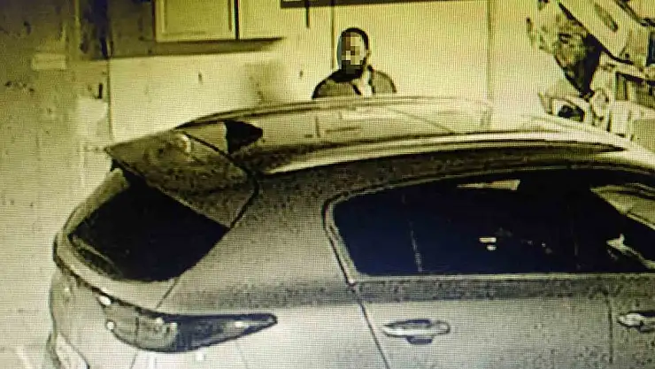 Güvenlik kamerasına yansıyan görüntülerde, şüpheli şahıs binadan çıkan kiracının arkasından içeri giriyor. Daha sonra otoparka yönelen şahıs, otoparkta poşet arıyor. Poşet aradıktan sonra matkapları çalan hırsızın, daha sonra duvar dibinde bulunan jantları çaldığı görülüyor.