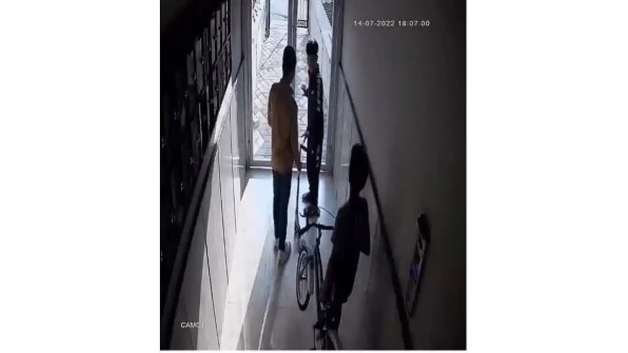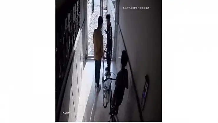 Ankara'nın Altındağ ilçesinde girdikleri apartmandan hırsızlık yaptıkları iddia edilen ve çocukların bisiklet ve scooter ile binadan çıkış anları güvenlik kamarası tarafından kaydedildi.