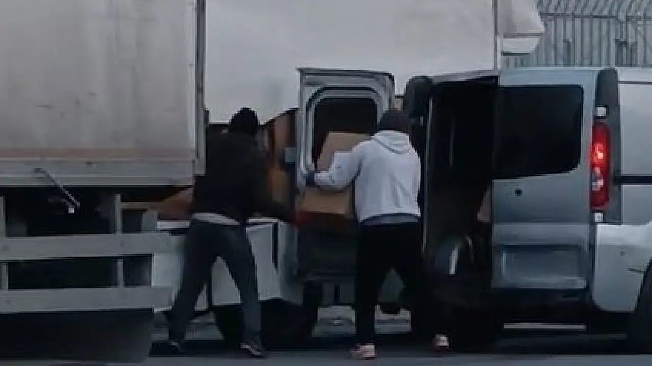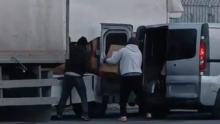 Olay, sabah saatlerinde Osmangazi Mahallesi'nde yaşandı. Yoldan geçen araç ve insanlara aldırmayan 3 şahıs, panelvan minibüs ile tır dorsesine yanaştı. Yük taşır gibi kolileri araca bindiren hırsızlar, çevredeki vatandaşların tepki göstermesi ile kaçtı. Soyulan aracın içindeki sürücünün uyuması dikkat çekti. Rahat tavırlar sergileyen hırsızlar cep telefonu kamerasına yansıdı.