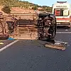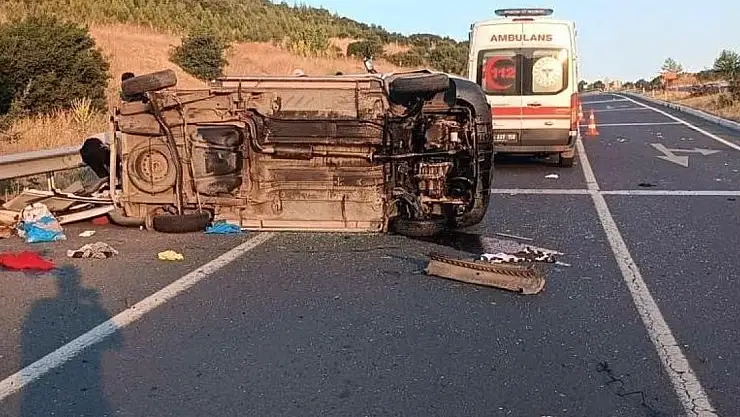 Uşak'ta hafif ticari aracın refüje çarpıp devrilmesi sonucu 1 kişi öldü 1'i bebek 4 kişi yaralandı.