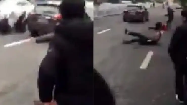 Araç eylemcilerin arasına daldı, 8 kişi yaralandı.